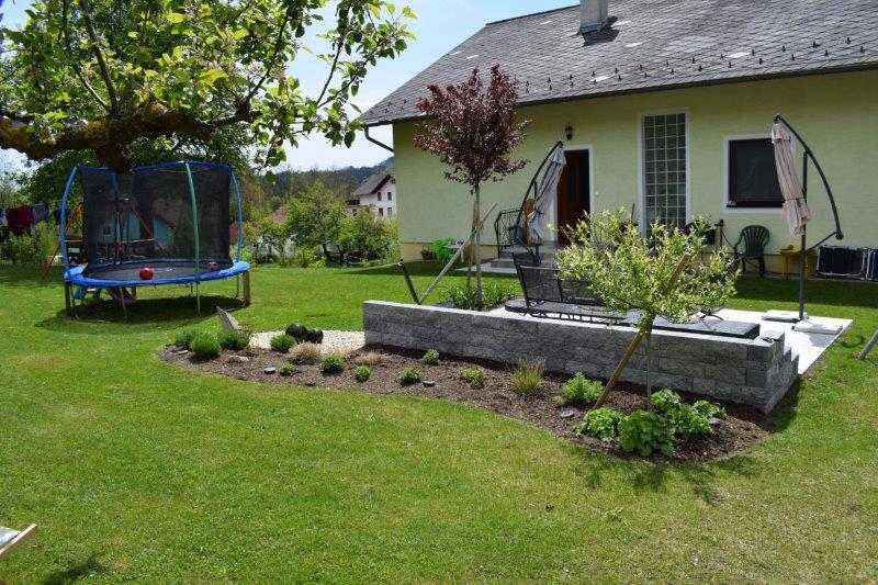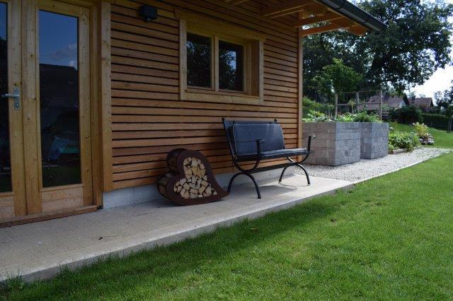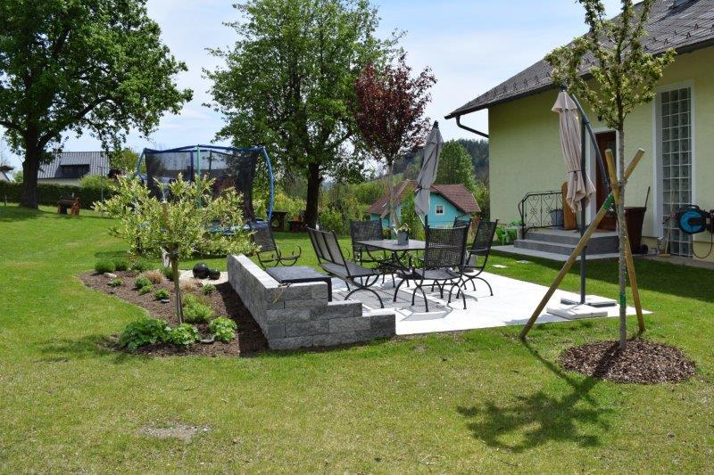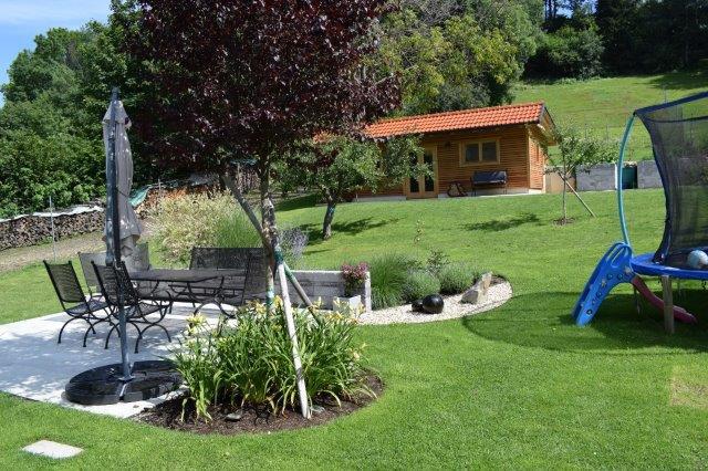 In unserem Garten können sie sich rundum wohlfühlen und mit einem Blick auf unsere Alpakaherde entspannen.
