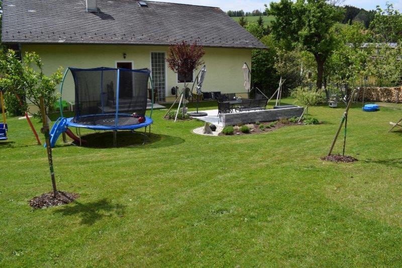 Kinder können sich sorglos im weitläufigen Garten und am hauseigenen Kinderspielplatz austoben.